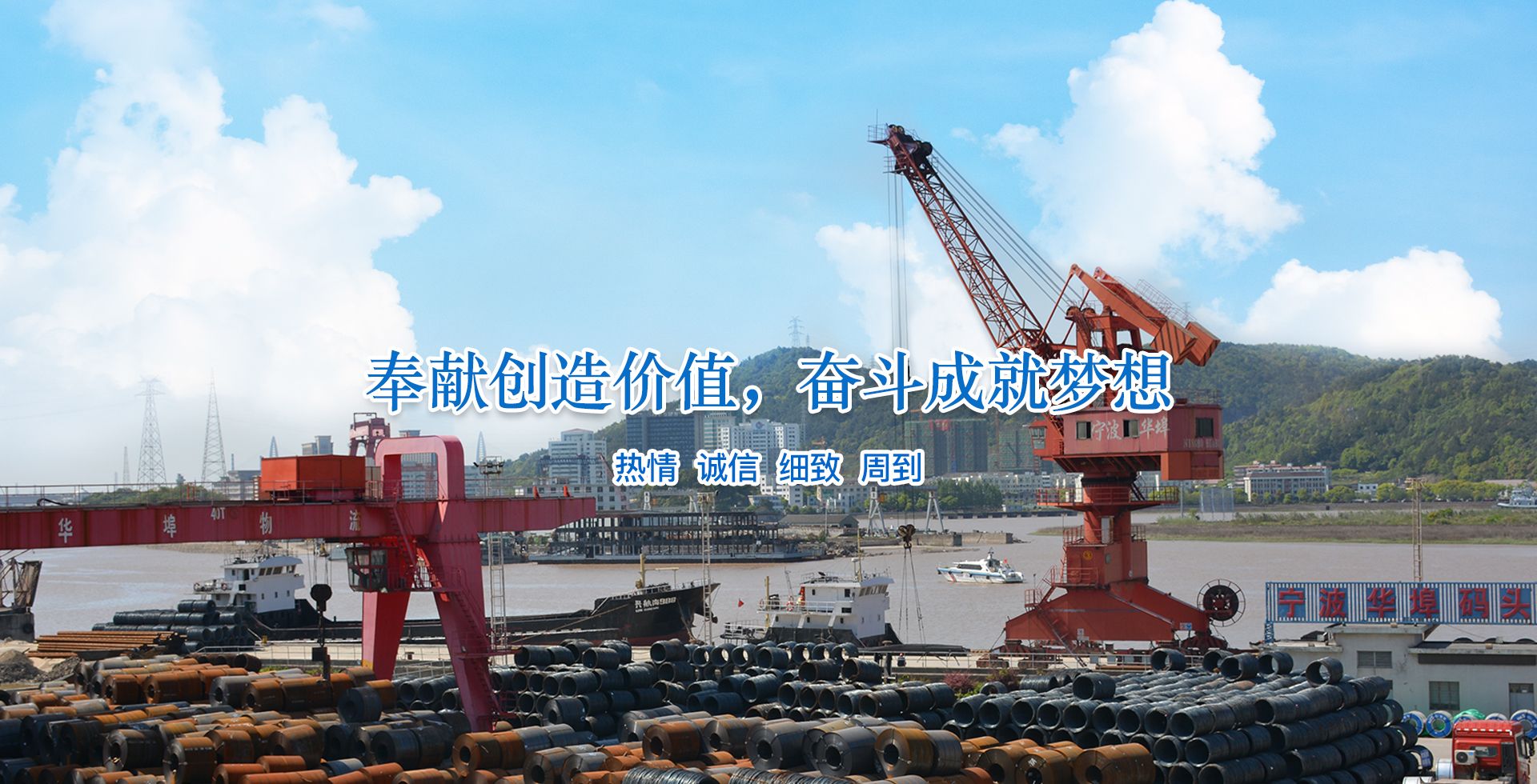 宁波华埠控股有限公司座落于宁波市北仑区白峰街道小门海口36号,临东海穿山黄峙江,南临329国道,与大榭岛隔江相望,水陆交通极其便利。公司成立于2004年4月,2019年12月进行了全面重组,注册资金9800万元,优化了经营团队,更新了设施设备,提升了核心竞争力,牢固树立了向制度要管理、向管理要效益、向效益要发展的经营理念。